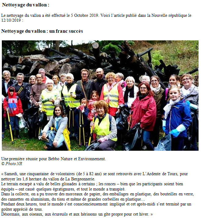 Dimanche 2 octobre, le refuge LPO a été inauguré dans le vallon de la Bergeonnerie par notre maire Emmanuel Denis, Betsabée Hass adjointe au maire en charge de la biodiversité, Sylvain Amiot de la direction Patrimoine Végétal et Biodiversité, avec la participation de Christian Andrès Président de LPO Touraine et Vincent Licheron son directeur.