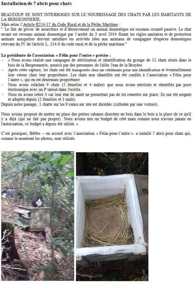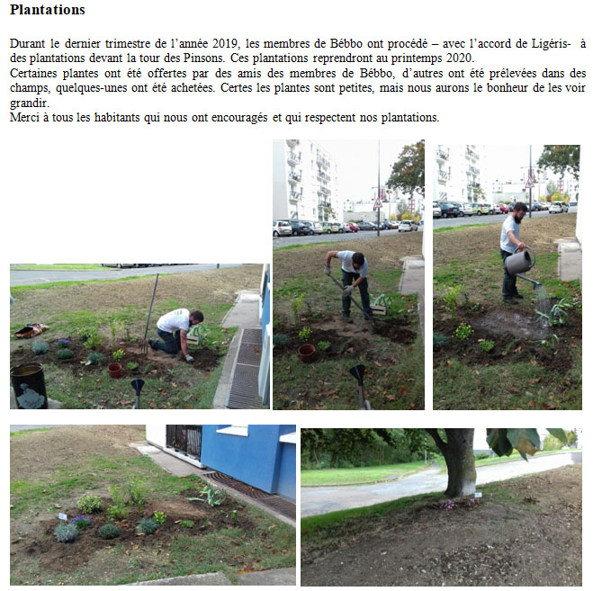 D’autres projets sont en cours de concrétisation et il nous faudra les accompagner : création de la mare, édification d’un refuge LPO, installation de ruches, rénovation du chemin est/ouest, réalisation d’un mini arboretum.