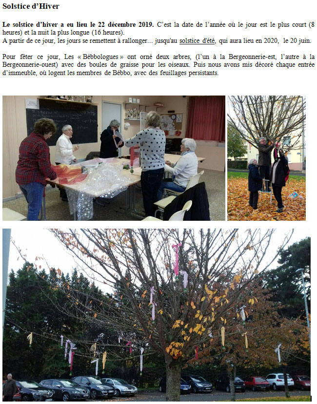 Entre Covid, vaccinations et retour à une (presque) normalité, nous nous sommes réunies 10 fois cette année, soit à peu près une réunion par mois. Nous avons réalisé de nombreux projets : fabrication de nichoirs à l’école, installation de la Boîte à lire, animations de Noël, plantation du verger ; participé à l’installation de 2 composteur, relancé l’arborisation de l’Ardente.