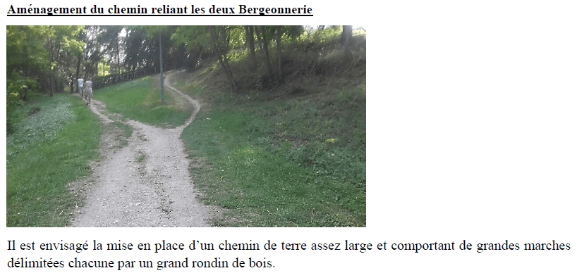 - Réfection du chemin entre les 2 Bergeonnerie (il en manque un bout, mais nous continuons à nous mobiliser)